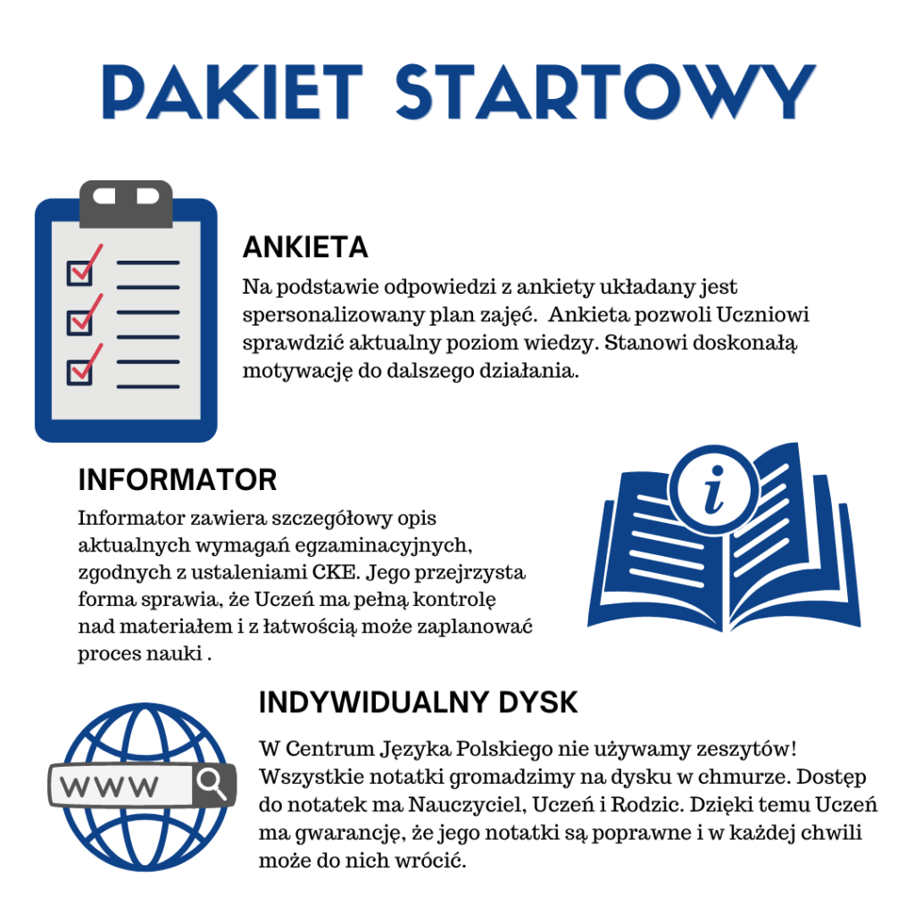 Egzamin jest przeprowadzany online na platformie dyskowej, co zapewnia Uczniom wygodne i elastyczne warunki uczestnictwa. W Centrum Języka Polskiego szczególnie dbamy o przestrzeganie wymagań egzaminacyjnych ustalonych przez CKE, dlatego właśnie przy przeprowadzaniu egzaminu respektuje się ogólne wytyczne dotyczące zakresu materiału.
