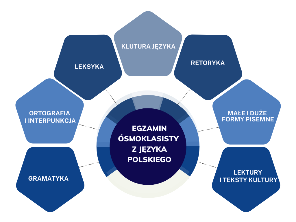 Egzamin ósmoklasisty z języka polskiego stanowi ogromne wyzwanie na drodze edukacyjnej Ucznia, bowiem wymaga nie tylko znajomości reguł gramatycznych, czy wykazywania się umiejętnością czytania ze zrozumieniem – to także egzamin sprawdzający umiejętność analitycznego myślenia, umiejętność odpowiedzi na pytania otwarte, czy wnioskowania na podstawie tekstów literackich. Ponadto Uczniowie muszą opanować tworzenie małych i dużych form pisemnych.